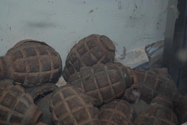 A grandfather was surprised to find that the silver ring he spotted and pulled from the ground was a pin attached to a buried hand grenade.
