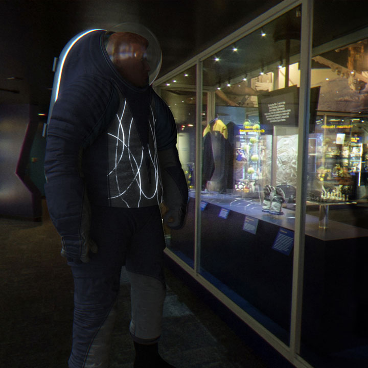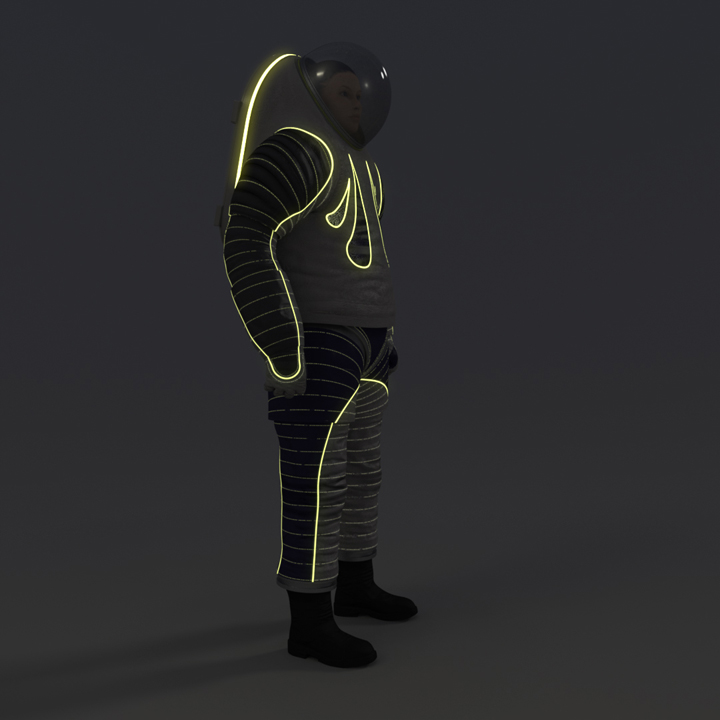“Technology” pays homage to spacesuit achievements of the past while incorporating subtle elements of the future. By using Luminex wire and light-emitting patches, this design puts a new spin on spacewalking standards such as ways to identify crew members.